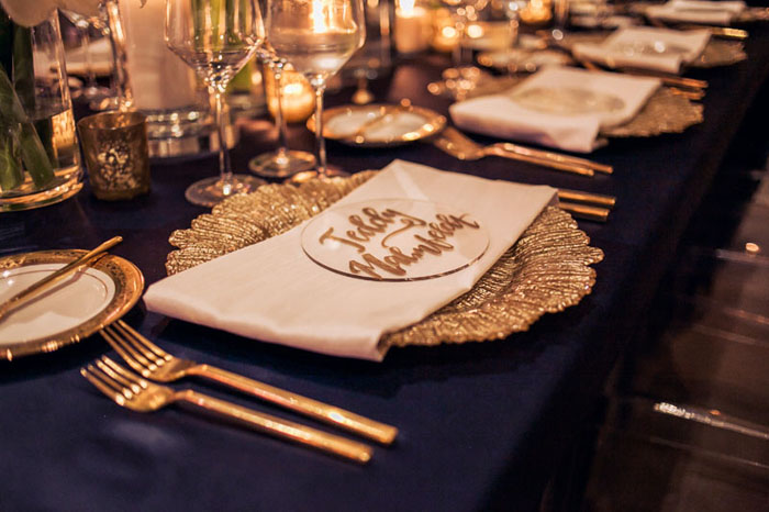This romantic New Year's Eve wedding for Sarah & Todd was held at the stunning Presqu'ile Winery in Santa Ynez. Sarah chose a stunning, strapless, trumpet wedding gown and paired it with a loose chignon by Lunabella Hair & Makeup. At ceremony, instead of a floral arbor, a hedge of pampas grass designed by Blue Magnolia Events framed the space. Afterwards, guests enjoyed an elegant dinner with candelabras and centerpieces and garlands featuring phalenopsis orchids, calla lillies, and tulips. And instead of a chair treatment, custom decals with the bride and groom's nicknames for each other marked their seats. And a special thanks to Wade Carr for capturing all the magic!